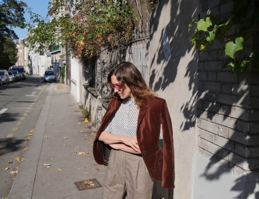Kolusin mummolan autotallin peräkammarista vanhoja vaatesäkkejäni. Mukaan lähti diskopaita, jonka hankin aikoinaan vintagekaupasta Birminghamista ja beige kirpparihame. Sekin löydetty viereisestä kierrätyskeskuksesta. Ja takki, sen löysin viime vuonna helsinkiläisestä vintageputiikista. Tuo italialaiskaunotar palveli minua viime vuonna raskausaikana, kun mikään muu talvitakki ei mahtunut vyötäröltä kiinni. Nyt se on voimatakkini: se päällä viiletän takki auki Pariisissa. Täällä Suomessa vieraillessani puen vielä varmuuden vuoksi alle kevyttoppiksen, jotta koiralenkki sujuisi lämpöisästi.